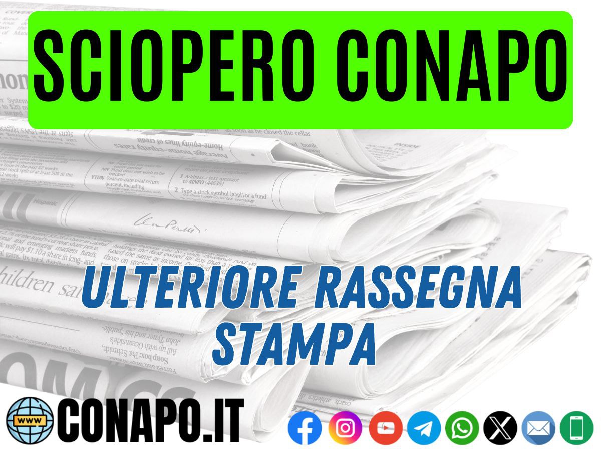 Sciopero CONAPO – ulteriore rassegna stampa. da Redazione_Conapo 18 Febbraio 2024 18 Febbraio 2024 1,1K Rassegna stampa domenica 18 febbraio 2024 Leggi la nota Scarica il PDF Stampa Condividi 0 FacebookTwitterPinterestWhatsappTelegramEmail Potrebbe piacerti anche Pubblicazione graduatorie finali – Concorsi pubblici a 7 posti per l’accesso alla qualifica di... 5 Dicembre 2025 Screening oncologico e cardiovascolare per il personale in servizio e in quiescenza. 4 Dicembre 2025 Il Governo incontra Forze Armate, Comparto Sicurezza e Soccorso Pubblico. 4 Dicembre 2025 Buona Santa Barbara. 4 Dicembre 2025 Avvio 103° corso Allievi Vigili del Fuoco 3 Dicembre 2025 Procedura di selezione per 18 posti di specialista di aeromobile vigile del fuoco per... 3 Dicembre 2025 post precedente Da nord a sud: eloquente il sostegno in tutti i Comandi – Sciopero CONAPO: adesione oltre il 50% con punte del 100% in molti comandi – I Vigili del Fuoco hanno parlato chiaro! prossimo post Costituzione Comitato Unico di Garanzia (CUG) del Corpo Nazionale dei Vigili del Fuoco.