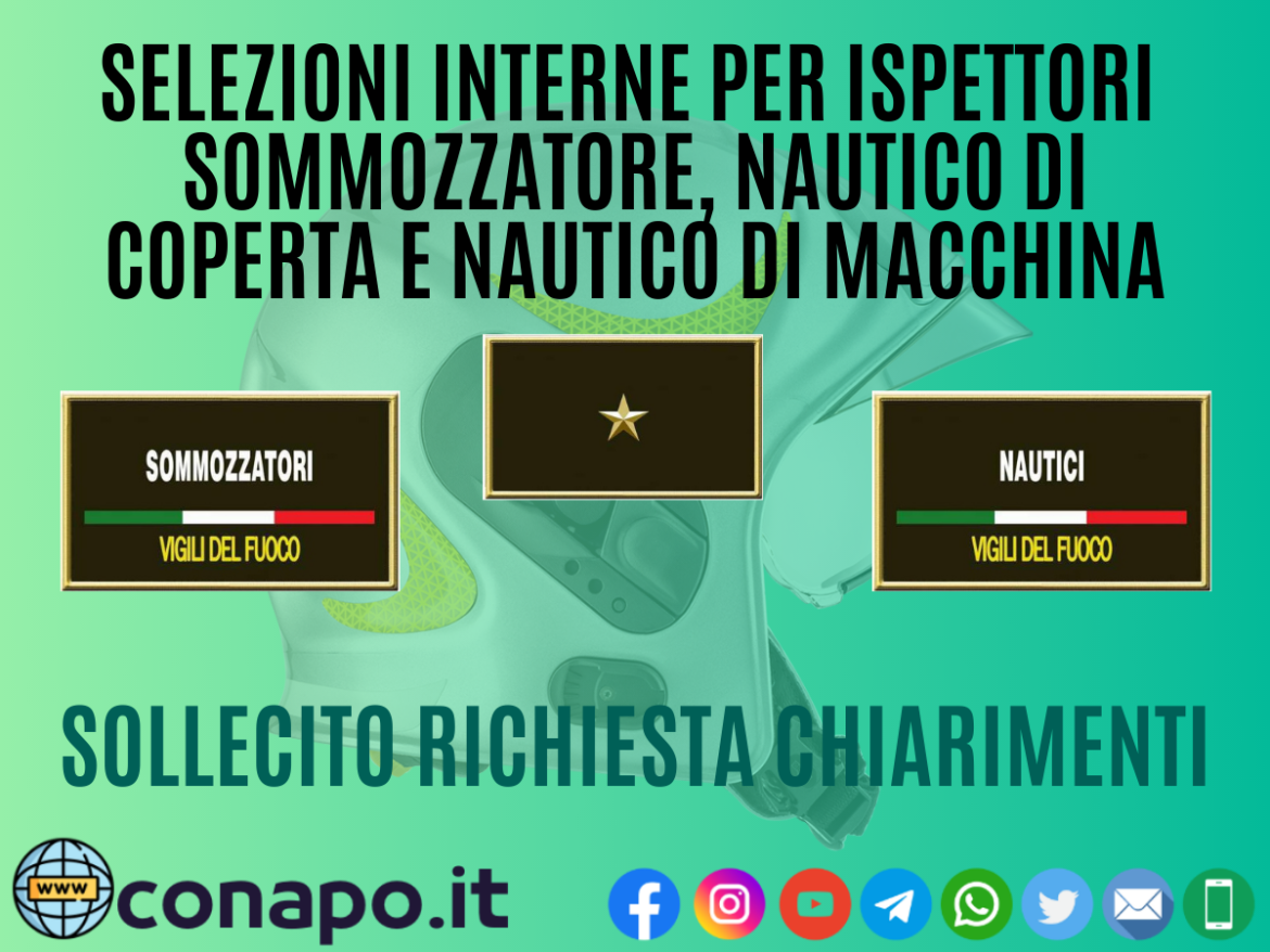 Home Bacheca Sindacale Selezioni interne per Ispettori Sommozzatore, Nautico di coperta e Nautico di macchina. Sollecito Richiesta chiarimenti.
