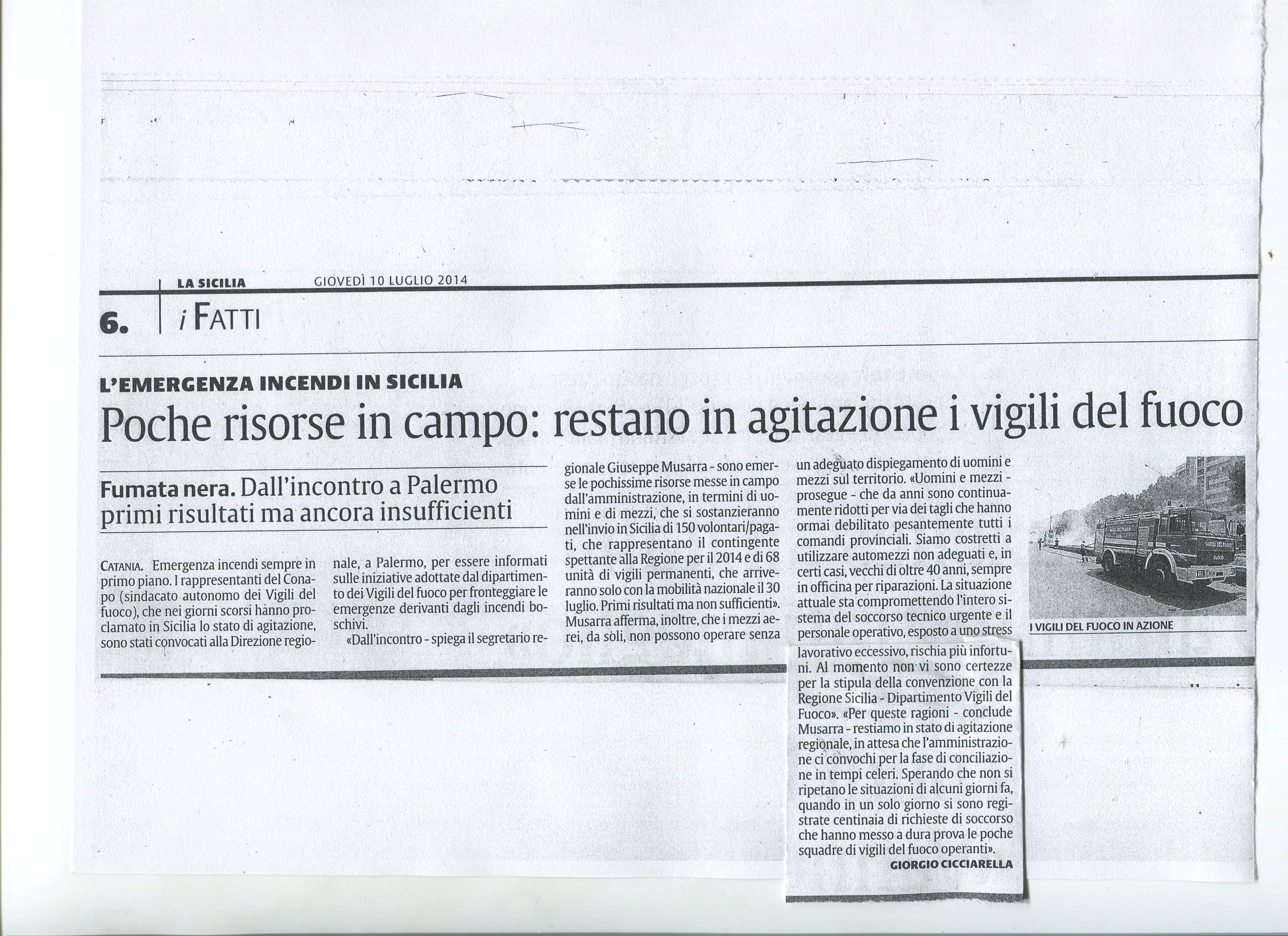 SICILIA – poche risorse in campo, restano in agitazione i vigili del fuoco – articolo del quotidiano La Sicilia.