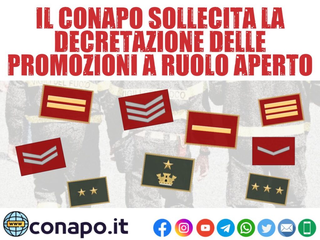 Il 30 dicembre u.s. la Direzione Centrale per le Risorse Umane (DCRISUM prot. n. 3766 del 30.12.2022) ha pubblicato, grazie anche alle ripetute sollecitazioni di questa O.S. CONAPO (tra le altre la nota prot. n. 301/22 del 16.11.2022 e relativo riscontro), il Decreto riguardante le Promozioni a ruolo aperto del personale del Corpo nazionale in base all’anzianità maturata alla data del 31 dicembre 2021.