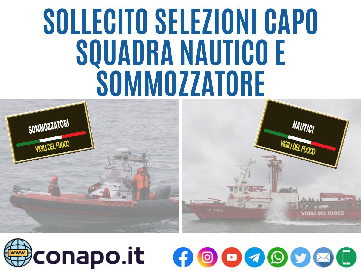 Tanto sopra premesso, il CONAPO sollecita l’emanazione dei Bandi di Selezione interne a Capo Squadra nautico di coperta, nautico di macchina e sommozzatore decorrenze 2020-2021- 2022.