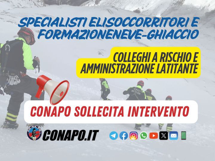 HomeBacheca SindacaleSpecialisti Elisoccorritori e formazione neve-ghiaccio. Colleghi a rischio e amministrazione latitante – CONAPO sollecita intervento.