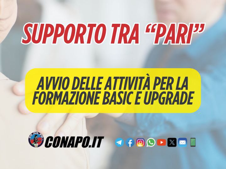 Supporto tra “Pari” – Avvio delle attività per la formazione basic e upgrade. da Redazione_Conapo 3 Luglio 2025 3 Luglio 2025 432 Leggi la nota Scarica il PDF Stampa Condividi 0 FacebookTwitterPinterestWhatsappTelegramEmail Potrebbe piacerti anche Consiglio dei Ministri n. 151 – 11 Dicembre 2025 – Proroga termini – Disposizioni... 12 Dicembre 2025 Specialisti di aeromobile – Decreto di inquadramento ed assegnazione sede. 10 Dicembre 2025 Incontro governo-sindacati sulla legge di Bilancio, l’intervento del Segretario Generale Marco Piergallini. 9 Dicembre 2025 Procedura di assunzione di n. 97 unità nella qualifica di operatore nel ruolo degli... 9 Dicembre 2025 Nomina in ruolo dei Vigili del Fuoco appartenenti al 100° corso di formazione teorico-pratico... 9 Dicembre 2025 Concorso pubblico a 52 posti per l’accesso alla qualifica di Ispettore logistico gestionale del... 9 Dicembre 2025 post precedente Informativa relativa al conferimento di incarichi dirigenziali. prossimo post Primi esiti sulle rilevazioni ambientali effettuate da parte degli organismi competenti territoriali riguardo la presenza di PFAS.