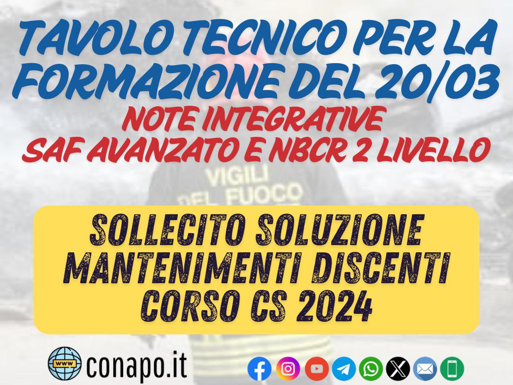 Circolare NBCR (2020): Si propone di ridurre da 5 a 3 anni l’anzianità di servizio richiesta per accedere al corso NBCR di livello 2. Il CONAPO esprime parere favorevole, ma sollecita l’introduzione di una fase preselettiva per garantire la preparazione adeguata dei candidati. Inoltre, viene evidenziata la difficoltà dei colleghi con qualifiche specialistiche (es. cinofili) nel partecipare ai corsi di formazione per Capo Squadra, in quanto la durata di 3 mesi rende difficile il mantenimento delle competenze necessarie.
