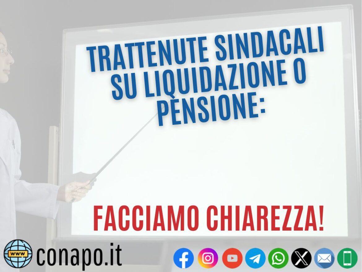 IL CONAPO NON FA TRATTENUTE SINDACALI SULLA LIQUIDAZIONE E SULLA PENSIONE