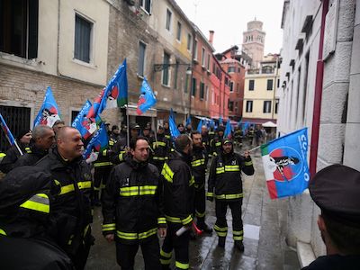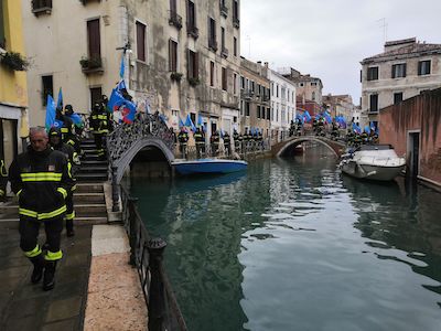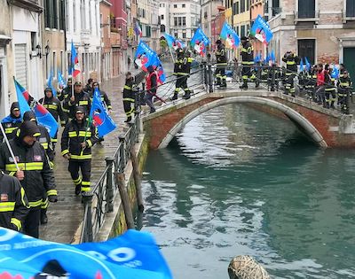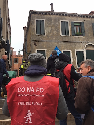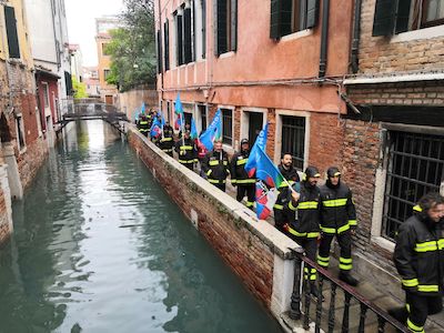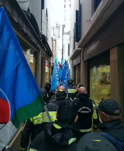 Successivamente la delegazione ha raggiunto l’assembramento davanti alla caserma dei Vigili del fuoco di Venezia per iniziare il corteo.